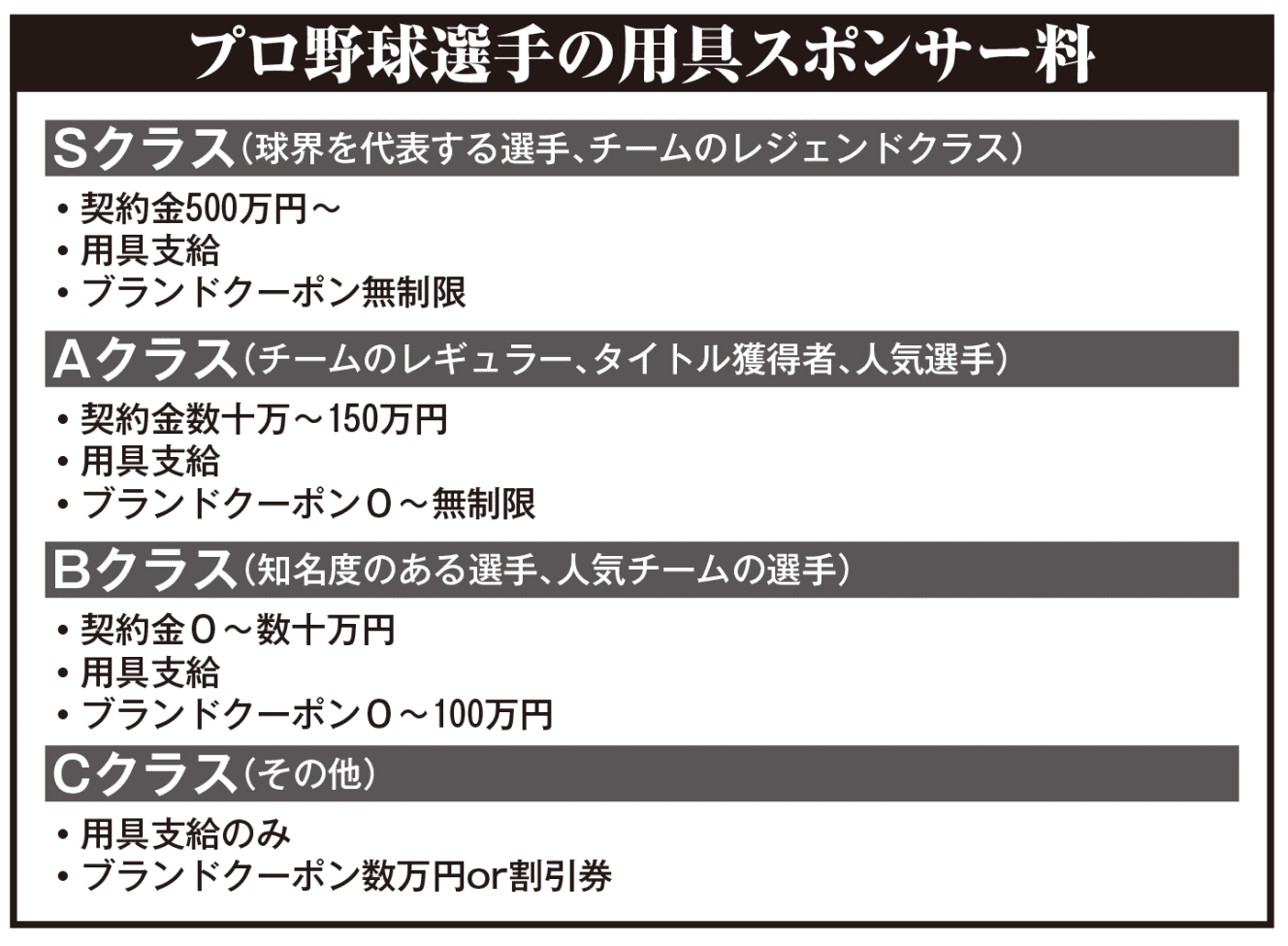 On the other hand, there are often cases where players receive coupons (gift certificates) from manufacturers. Even if they do not receive a contract fee, they can receive about 1 million yen a year in the form of a product of their choice. Of course, they can use products other than baseball equipment.