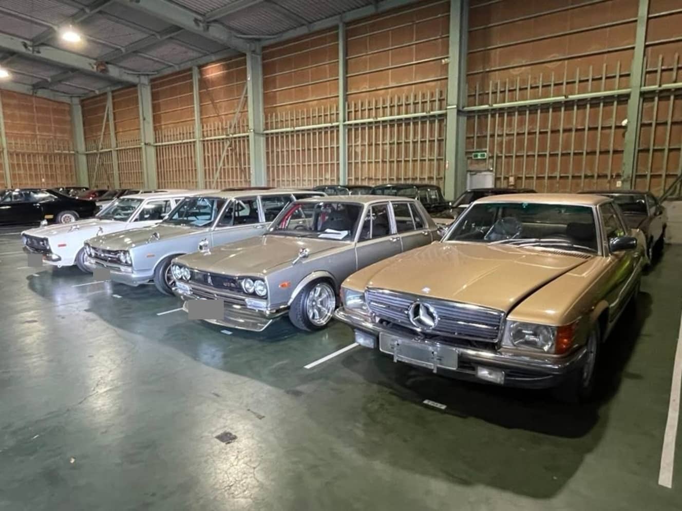 On the far right is a Mercedes Benz, and next to it on the left is Nissan’s third-generation Skyline, commonly known as the “Hakosuka”. The “Hakosuka Wagon” next to it is also said to be rare and valuable.