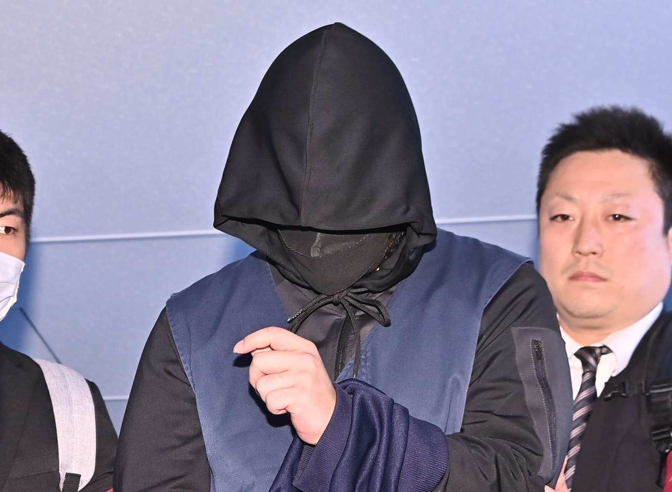 The men repatriated to Japan from Cambodia’s capital Phnom Penh on a chartered plane were dressed all in black, from masks to hoods to the clothes they were wearing. Many of them were looking down, but they looked odd.