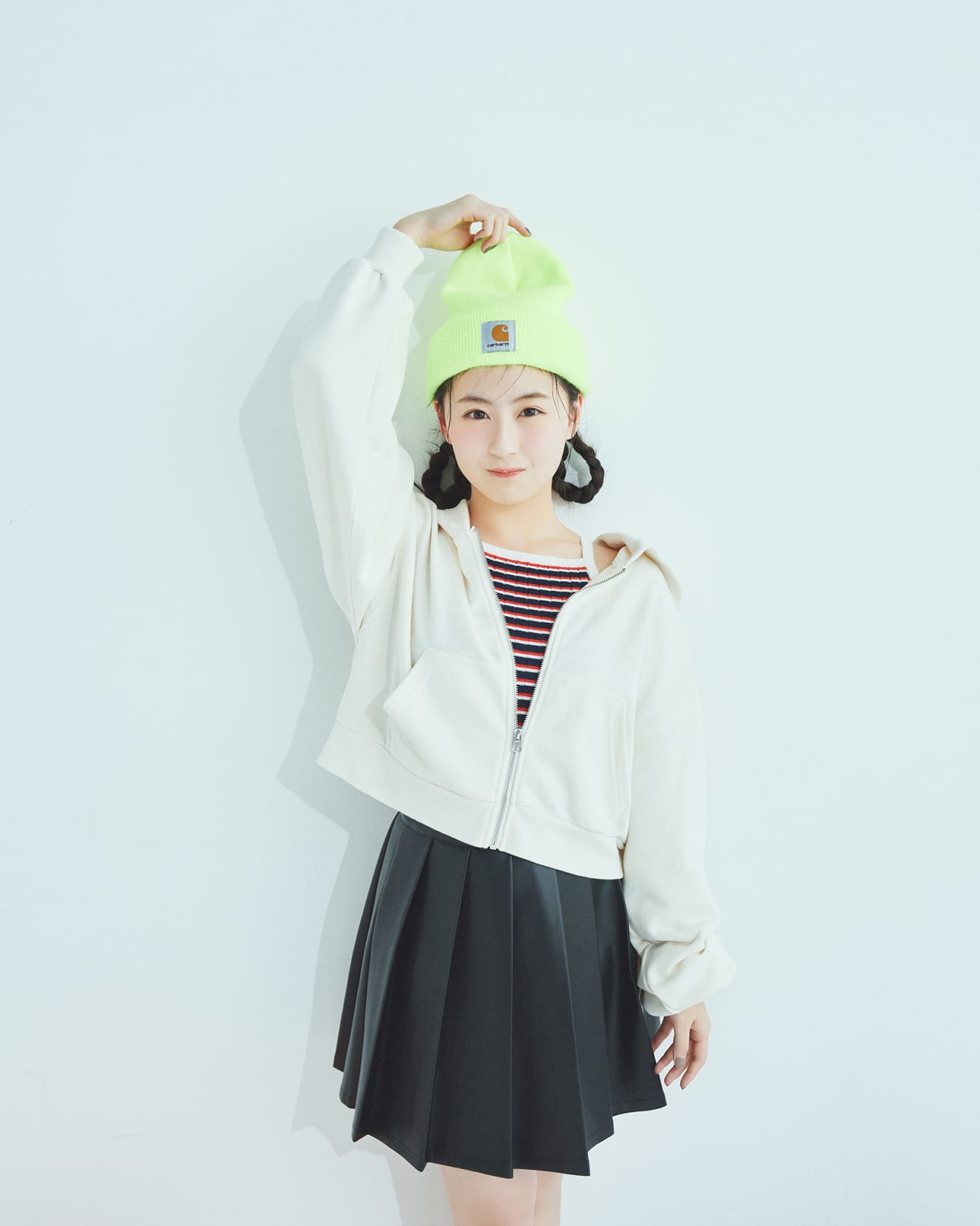 “At the moment, our oldest member, ALLY-chan, is the one who usually consolidates everyone’s opinions. However, it’s not something we can just leave to one person, so I want to be able to help out as well. Also, I want to become an idol who approaches any formation or position with a mindset of giving my best.”