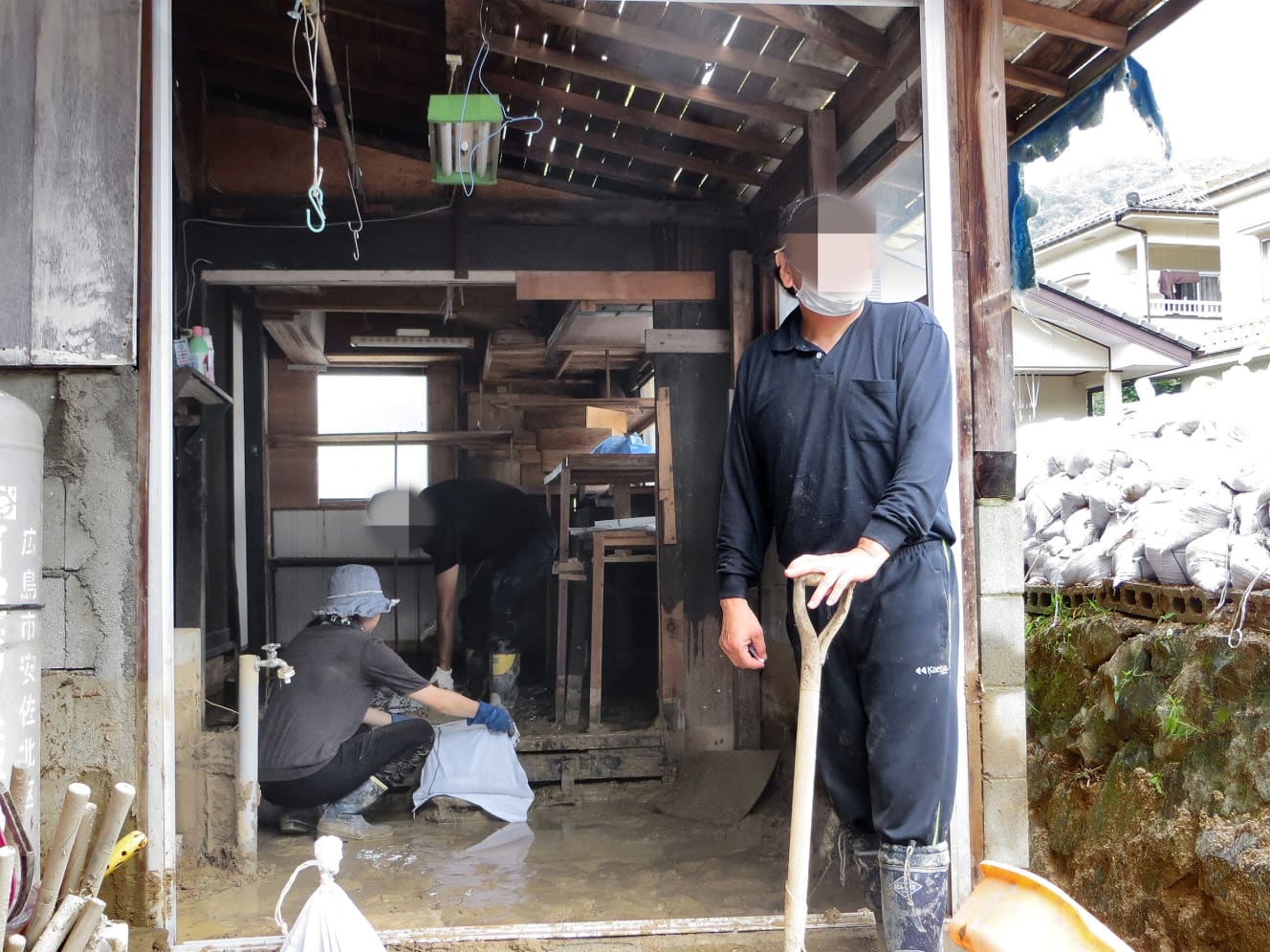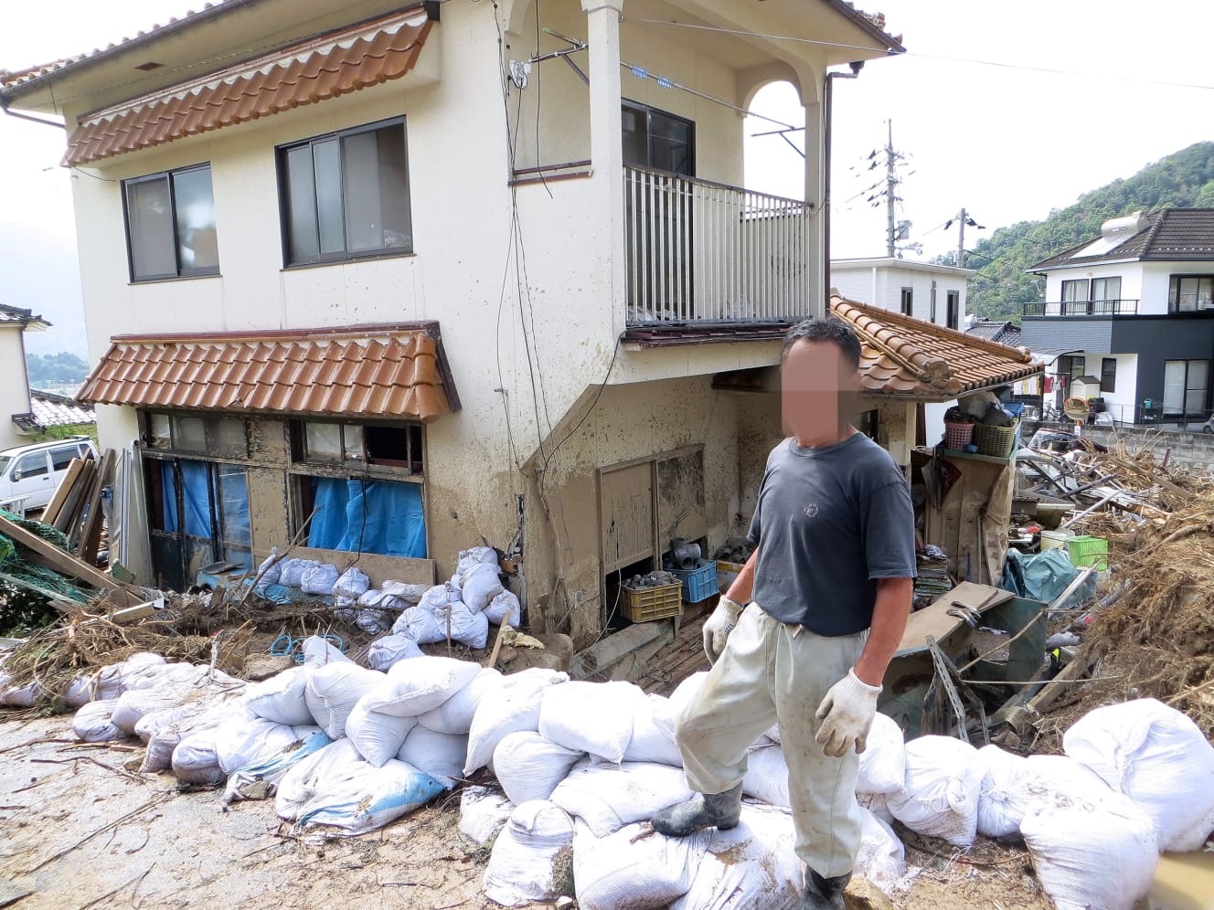 He said, “We’ve been working from 7:00 in the morning until dark to prevent secondary disasters, and at night we live in an evacuation center. The levees deep in the mountains are useless because they are filled with sand and soil. The river burst its banks and a tremendous mudslide came down. The water pipe burst.