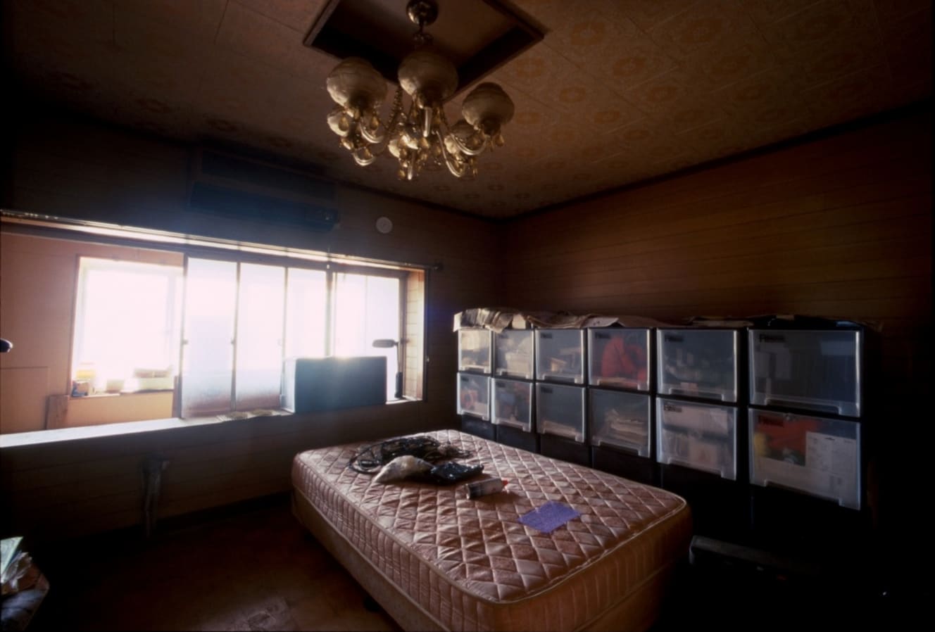 Upon ascending the stairs, Yagisawa noticed that the floor surface in the hallway was worn out. This was due to the plastic bags containing waste, which had caused the floor to rot. When he opened the door, he saw a chandelier hanging from the ceiling and a semi-double bed. The victim had lived a distorted existence on this bed, isolated from the outside world.