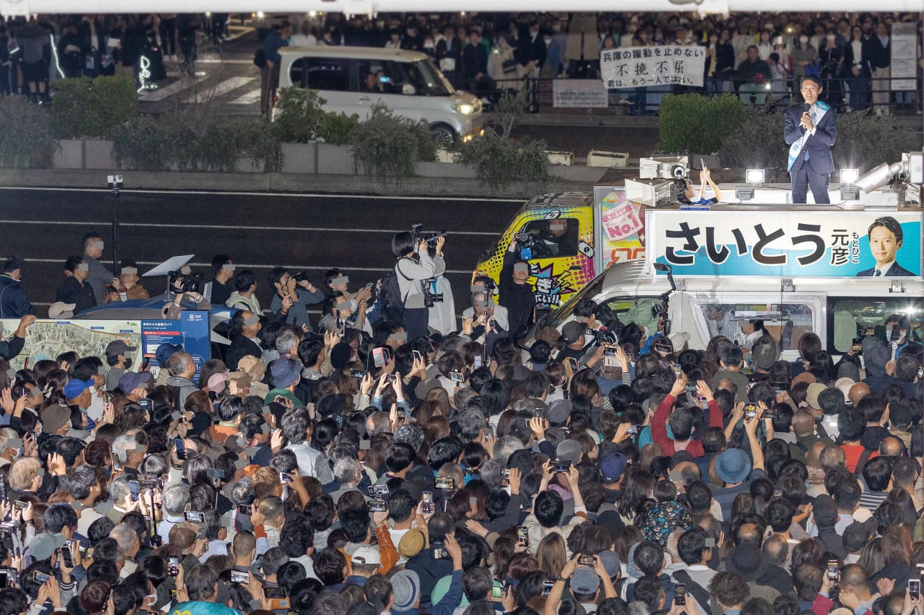 “About ten days after his disqualification, phrases such as ‘The late former head of the Prefectural Citizens’ Bureau’s accusation was a coup against Governor Saito’ and ‘Saito did not commit power harassment’ spread rapidly on social media. Amidst this intense surge of support, the Hyogo Prefecture branch of the Liberal Democratic Party, which had prohibited supporting Saito, ultimately allowed their support. The split in support among the lawmakers also worked in Saito’s favor” (from a reporter in Kansai).