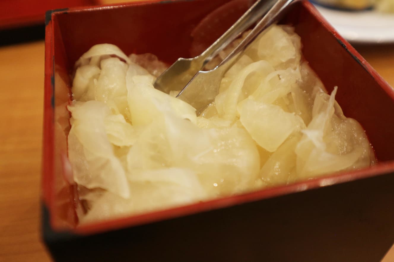 Ah. I knew that conveyor-belt sushi has a strong ally in the form of gari (pickled ginger)! I have always eaten more gari than anyone else because I am a poor person. It is colorless and looks good for your health. But, of course, I will stop at a moderate amount.