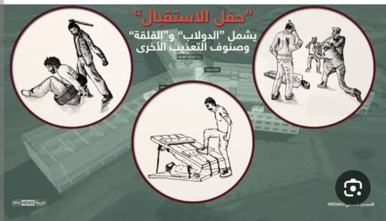 The other is called “wheel. In this torture, the prisoners’ hands are tied behind their backs, their bodies are folded in half, and they are fixed in the part of a car tire that contains the wheel, where they are whipped for about 20 minutes.