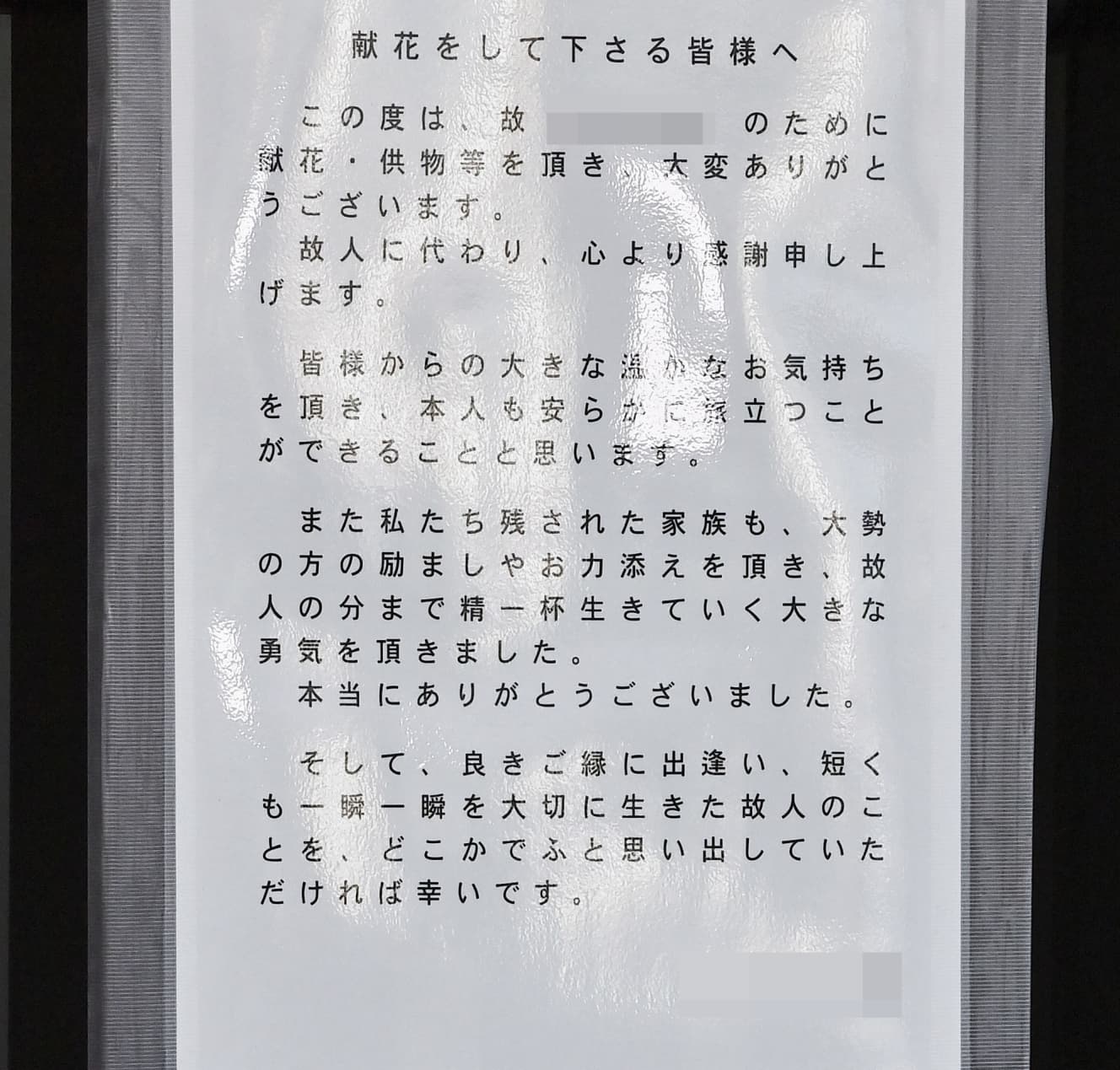 The family of the deceased who cherished every moment of his life”…The family of the deceased sent a message to the crime scene: “Life in debt of the suspect in the Nagano triple murder case.