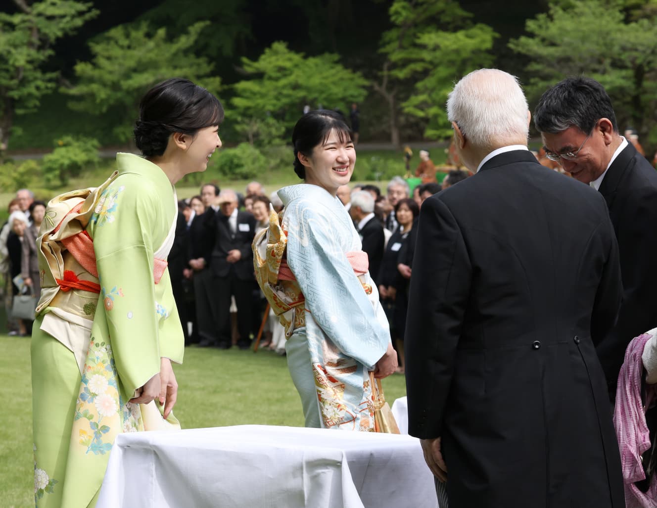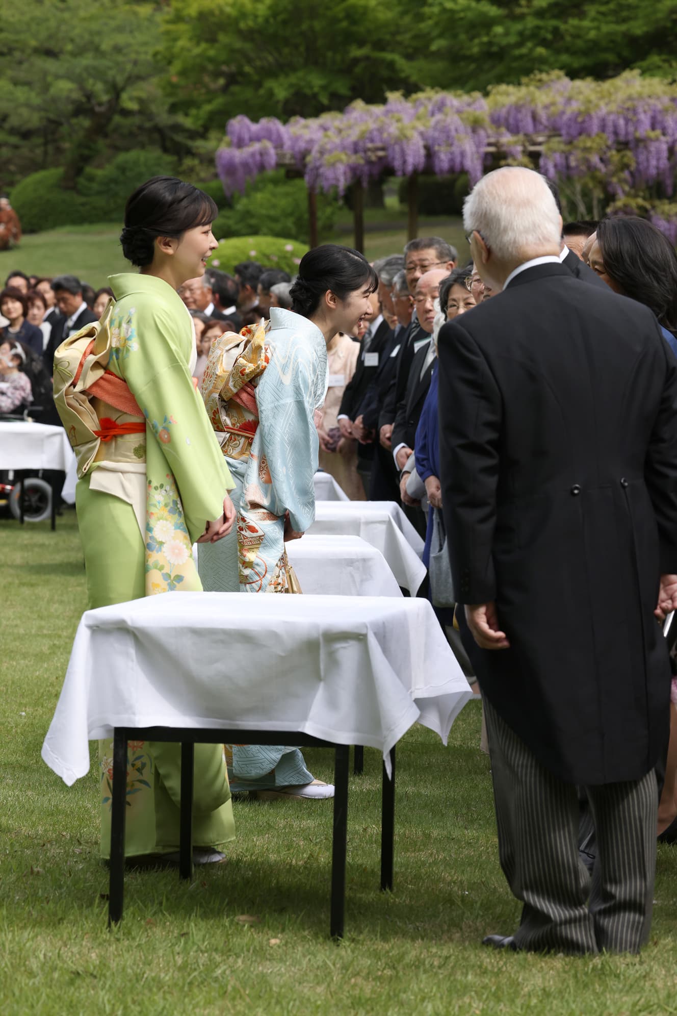 “Princess Aiko (23) was followed by Princess Kako (30) as they visited guests. I could feel Princess Aiko’s growth as she actively engaged in conversation with the guests. Princess Aiko wore a light blue kimono that reminded one of the flow of a spring stream, and Princess Kako, following her, wore a young grass-colored kimono that evoked the breath of spring.”