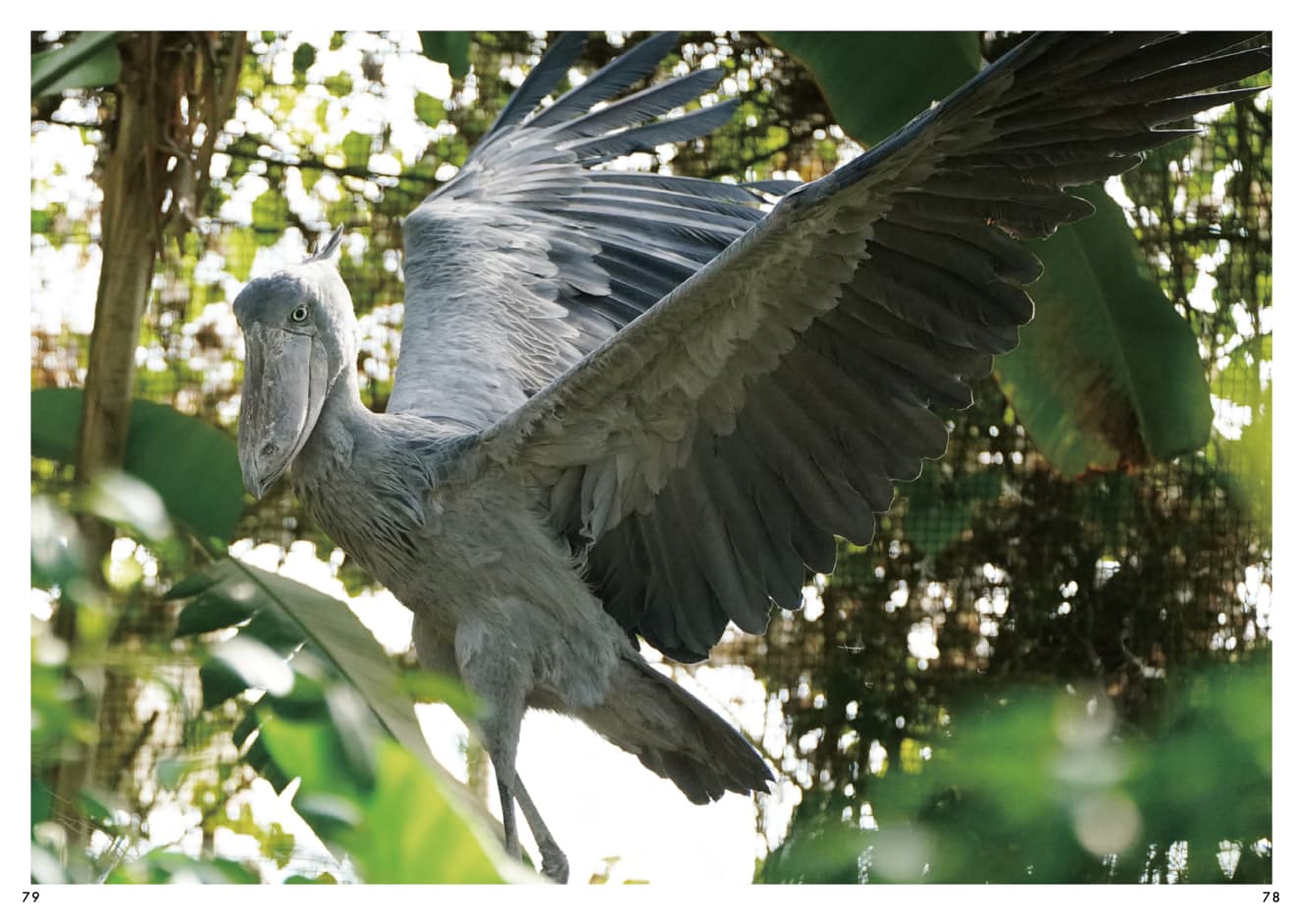 A photo book published in April—Bongo and Marimba the Shoebills (by Shunsuke Minamihaba, edited by Kobe Animal Kingdom, published by Tatsumi Publishing)—showcases the pair’s daily lives through numerous photos. Surprisingly, despite being dubbed the motionless bird, many pictures capture them in dynamic poses or even with humorous, expressive looks.