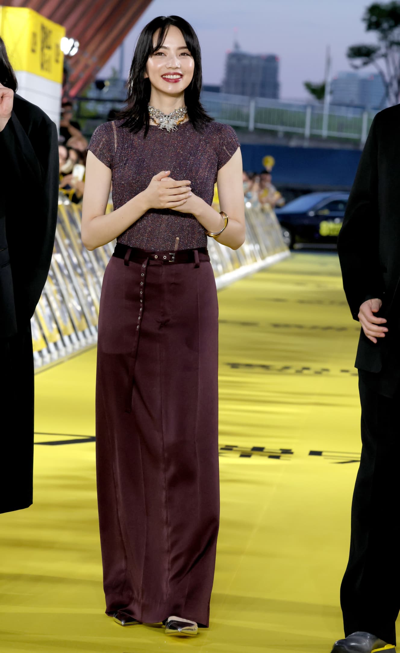 Nana Komatsu (29), model and actress, confidently walked not on a red carpet but on a yellow carpet before more than 600 attendees.