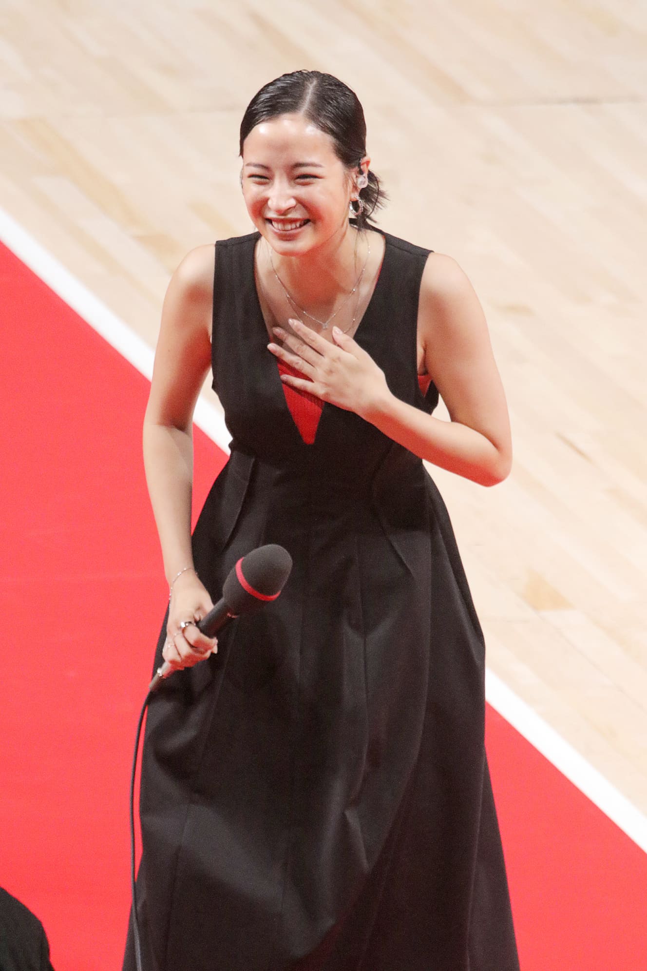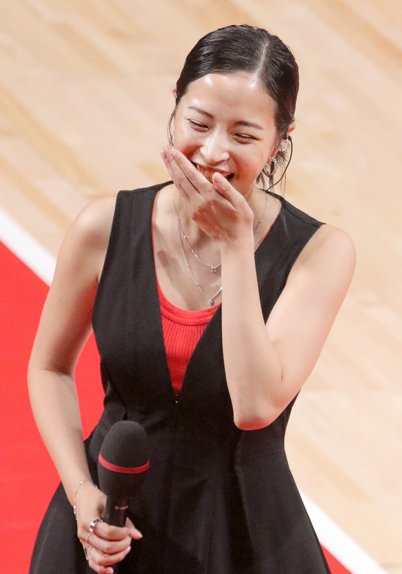 the one showing such a variety of expressions at the venue was actress Suzu Hirose (27). This was at the men’s basketball Japan national team’s warm-up match on July 19 at Lala Arena Tokyo Bay in Funabashi, Chiba Prefecture. With Hirose visiting the venue as a special booster for TV Asahi and cheering so charmingly, Japan defeated Denmark 69–64.