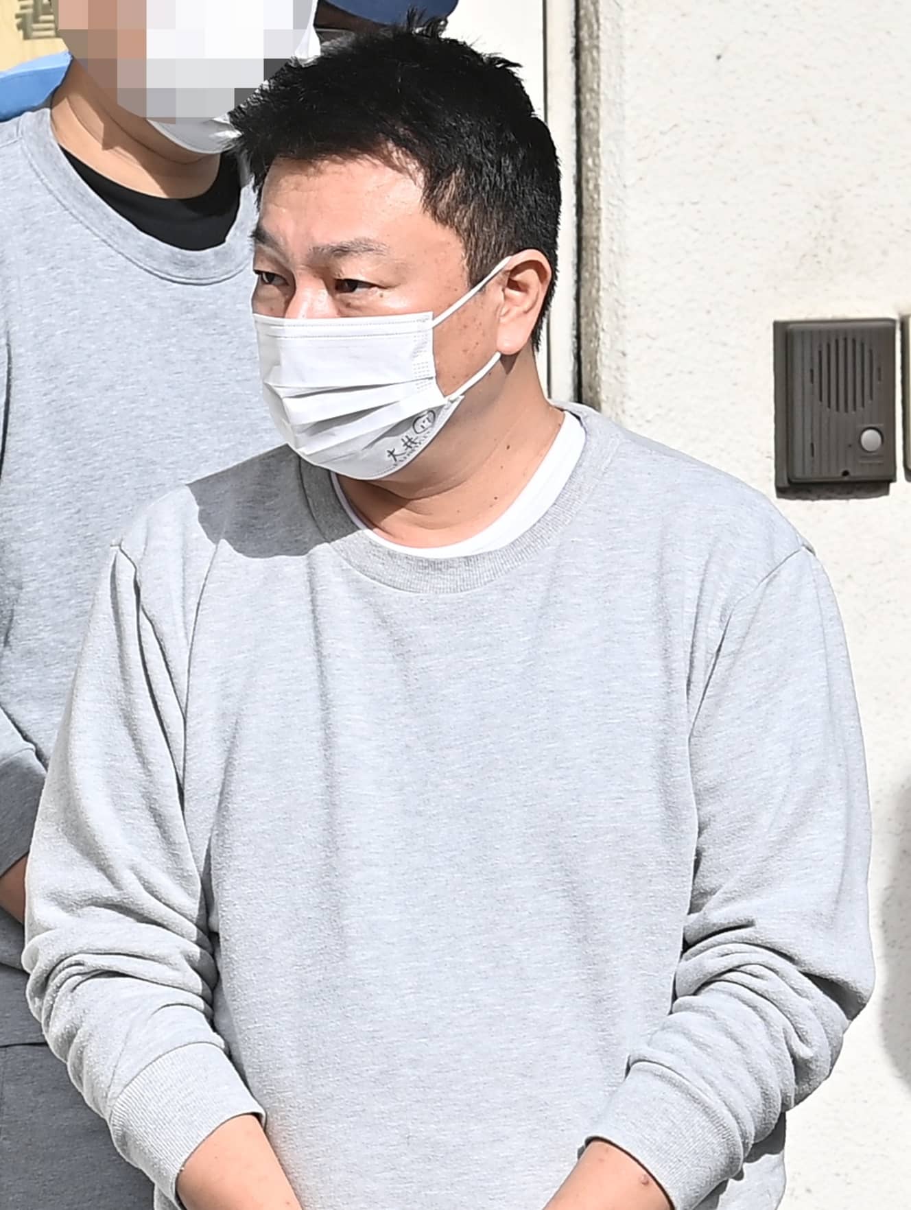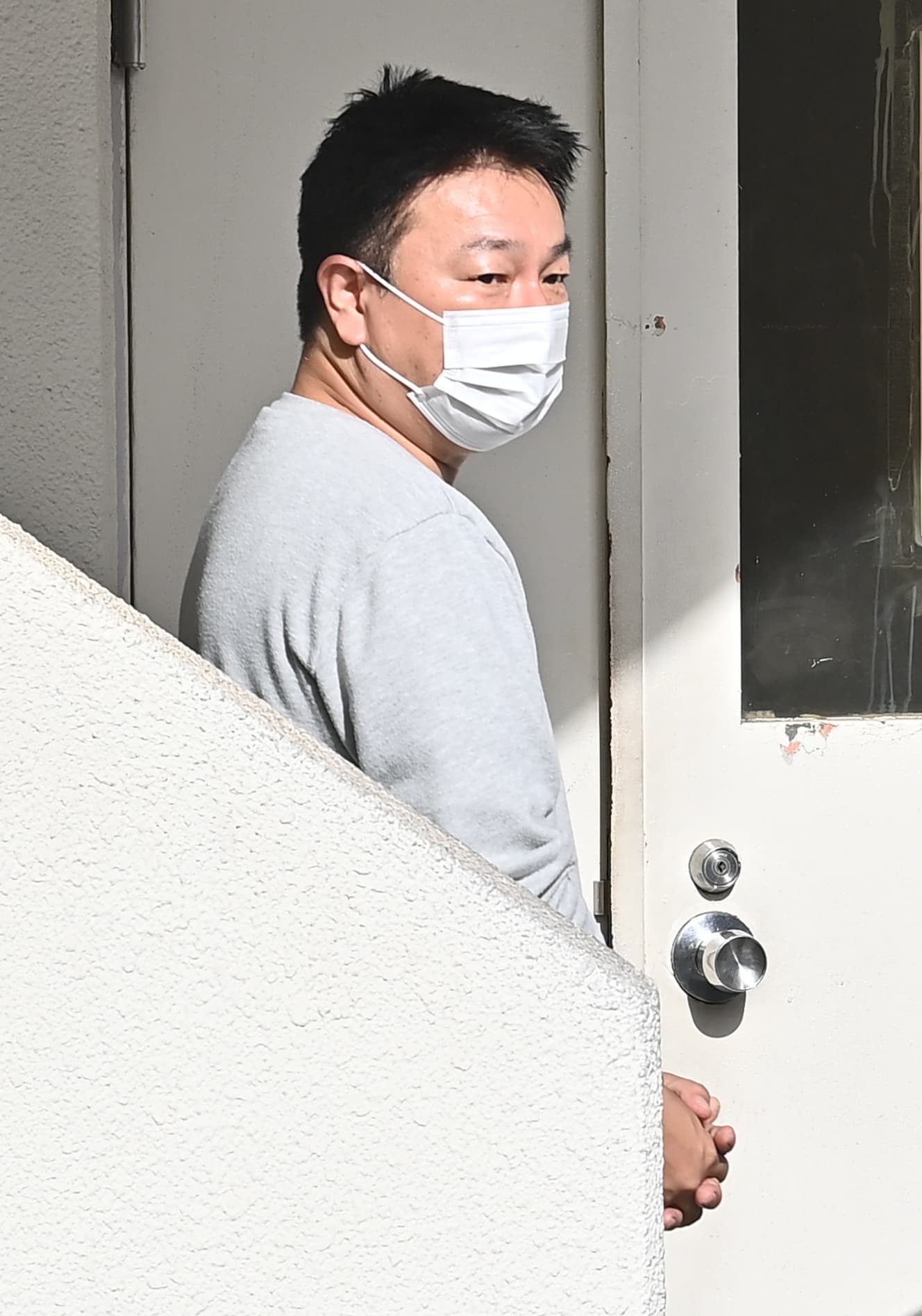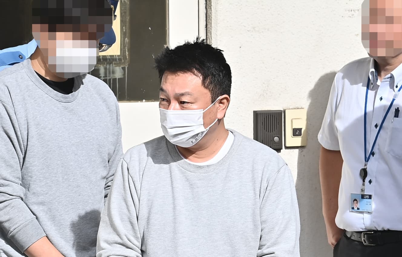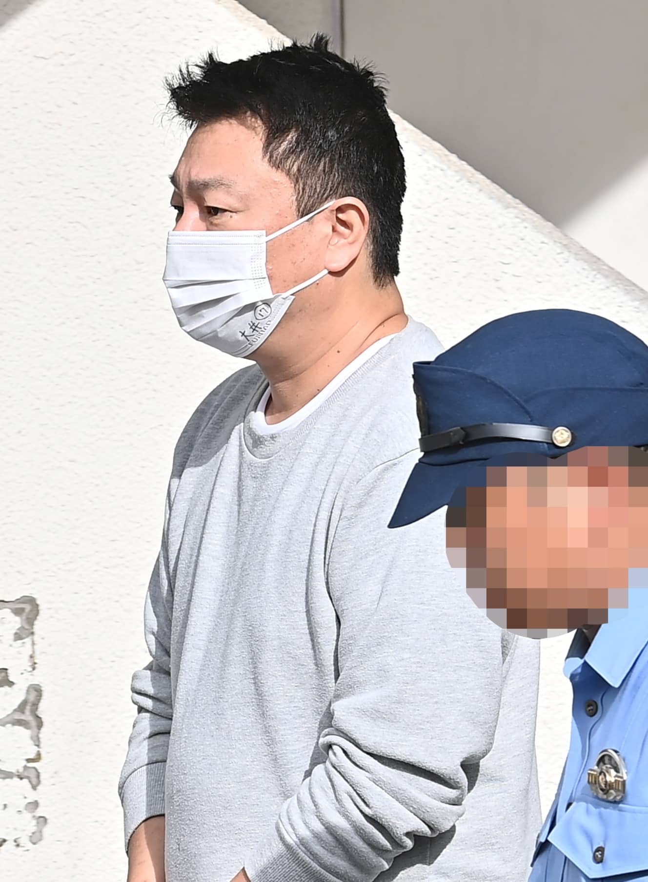 A man walking with a stern expression, prompted by police—Yuichi Iio (51), a former manager, was arrested by the Tokyo Metropolitan Police on suspicion of fraud for swindling 8 million yen in cash from Kabushiki Kaisha 333 (Sasami), a company represented by comedian Kin’niku-nin Nakayama (46). This was the scene on August 13 when he was sent to prosecutors.