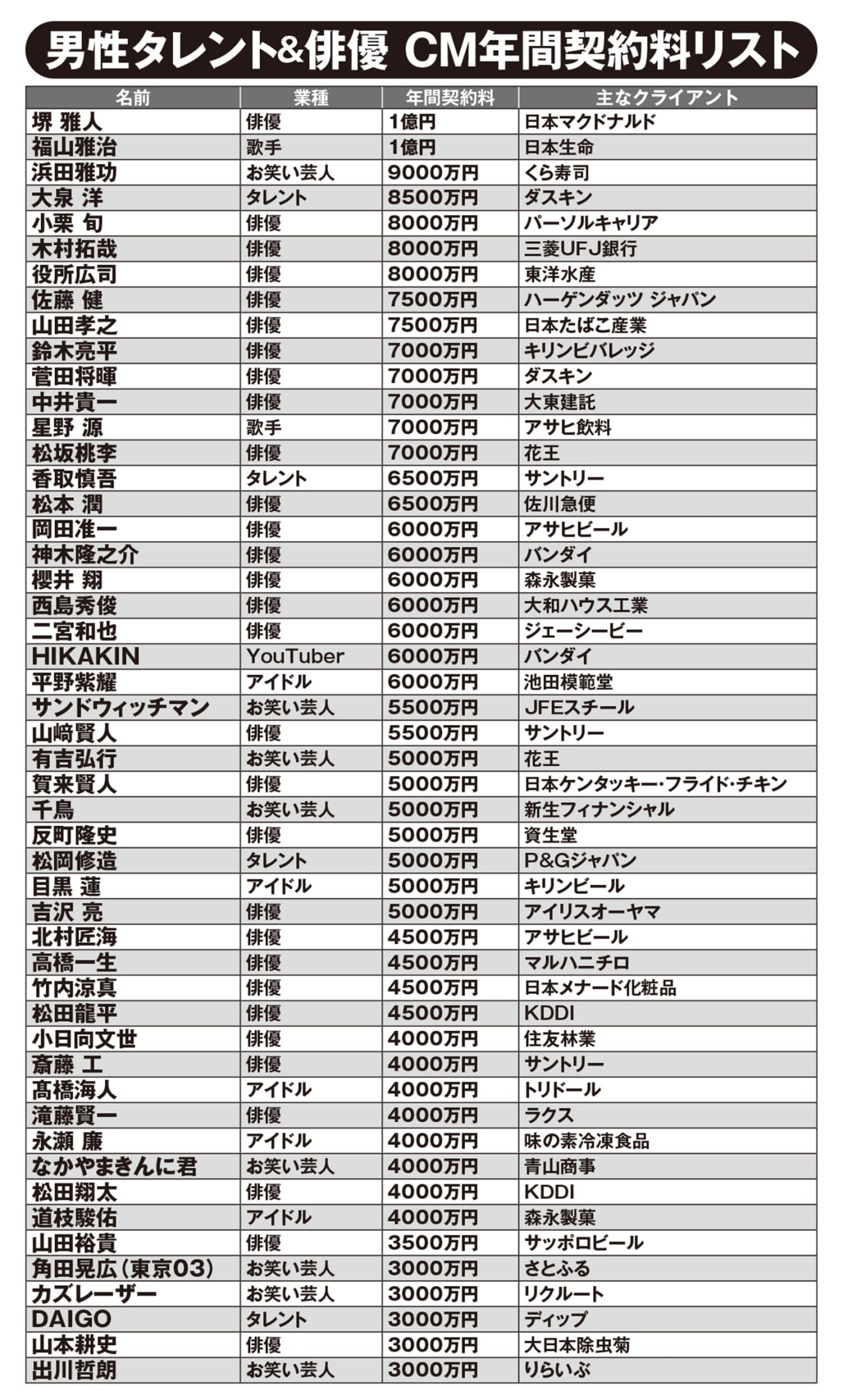 FRIDAY interviewed casting agency presidents and commercial planners based on confidential data held by a major advertising agency. By cross-referencing this information with the data they possess, we compiled the “Latest 2025 CM Appearance Fee List” for popular athletes and celebrities. The figures in the list represent standard market rates — essentially a starting point for negotiation — and may fluctuate depending on the relationship with the client and specific conditions.