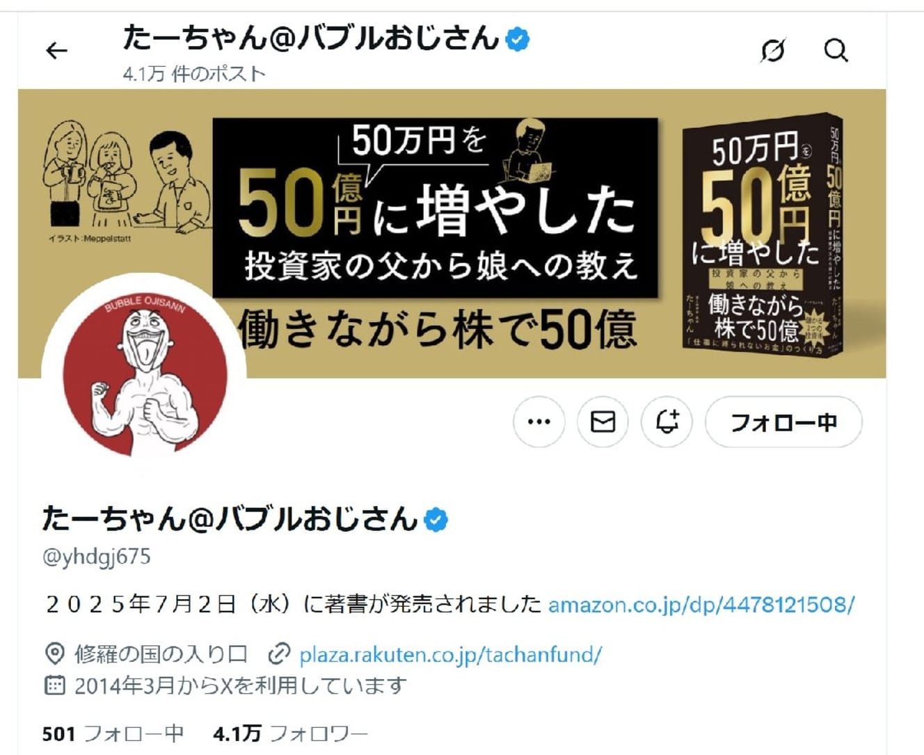 ■Mr. Tachan’s X (formerly Twitter) “Tachan @Bubble Old Man” is here