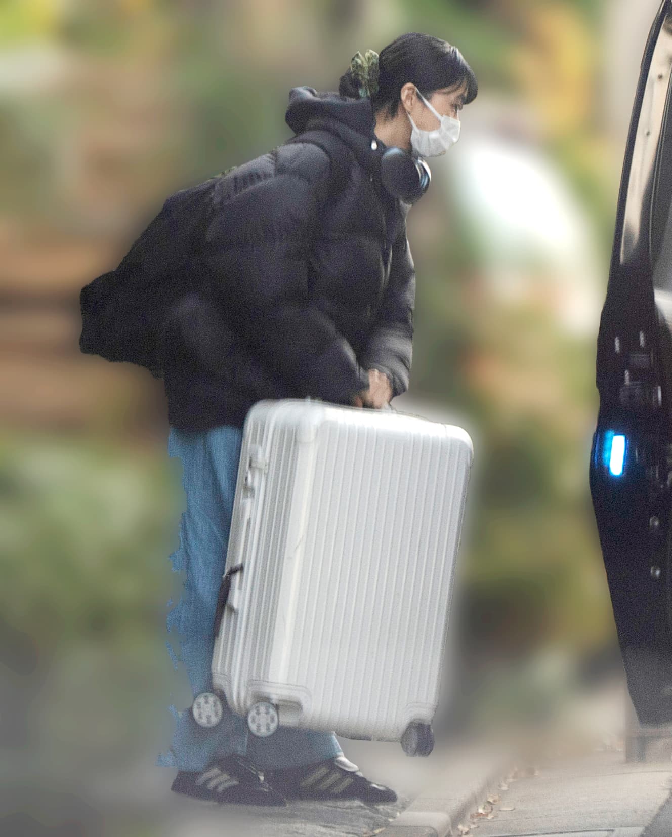 Then, at around 11:00 a.m. on another day, a cute woman with freshly cut bangs appeared from the same apartment. She is actor Yumi Kawai (24). She won the Best Actress Award at the 48th Japan Academy Prize this March at the age of just 24, and she has been in the limelight for many commercials. She is currently performing in the stage play “Watashi wo Motomete wo Sukasanai” (Don’t Look for Me), which started in October and is touring from Tokyo to Osaka, Toyama, and Aichi (……). On this day, she was seen with a heavy suitcase. On the day of the tour, he boarded a pick-up cab with a heavy suitcase and headed for the next day’s performance venue.