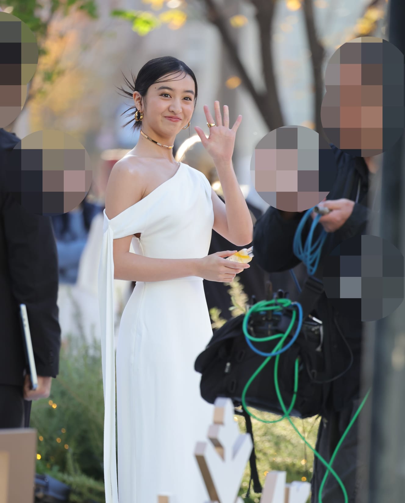 Under the sunny, late-autumn sky, it was model and actor Koki (22) who unabashedly showcased her snow-white skin.
