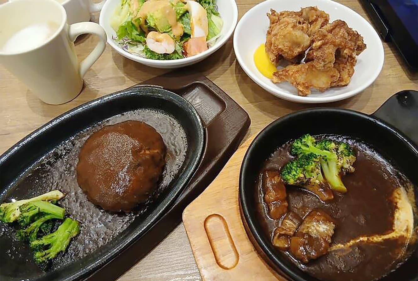 Yagyu: Saizeriya’s lunch menu “Diavola-style Hamburg Steak” is essential. Available until 3 p.m. on weekdays, with soup and rice for 600 yen. Rice can be upsized for +50 yen or downsized for -50 yen. Similarly, weekday-only but without time restriction is Gusto’s “Gusto Fit Menu 2.” You select 3 items from 39 mini-sized menu items, with a drink bar and unlimited soup refills. Prices vary by store, but 990–1,090 yen is exceptional.