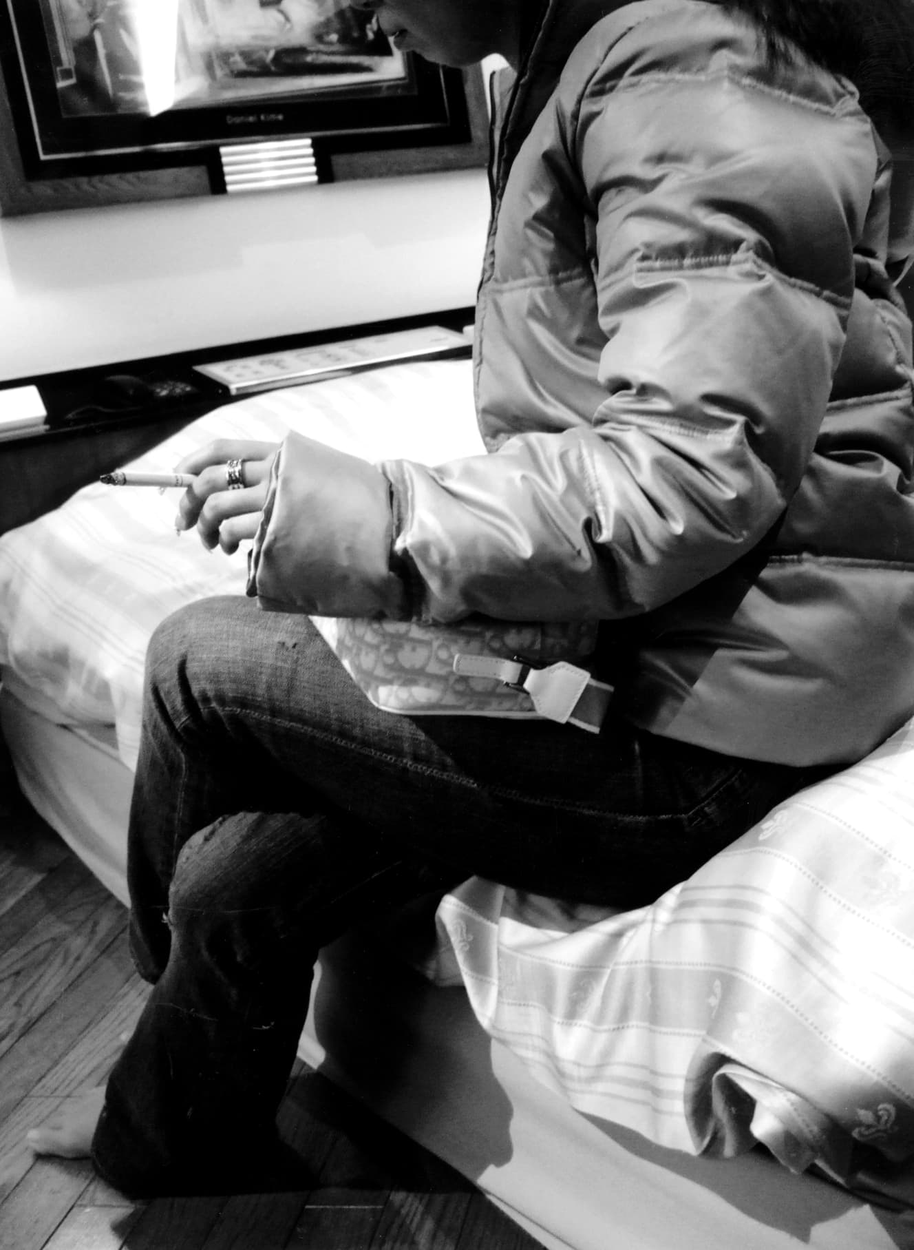 Two or three months after she started giving aid, she had a customer who persistently demanded to be videotaped. When she was offered double the gratuity, Manami agreed on the condition that she would not broadcast the video to others. However, there was no way she could keep such a promise. Her appearance in the video spread throughout the school when a classmate happened to find the footage on the Internet. She dropped out of school. Having no place to stay at home, Manami moved to Tokyo last spring. She now earns 300,000 yen a month living off of her job as an aide-de-camp.
