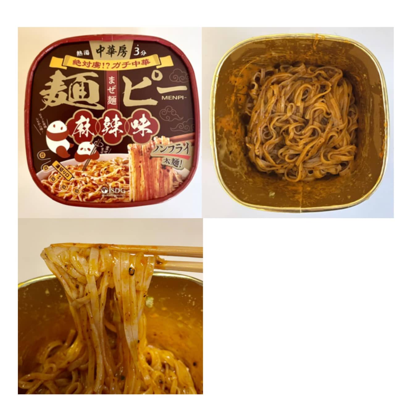 The noodles are made like yakisoba noodles in a cup without soup. The wheat noodles have a chewy texture, and the sauce is well mixed with the noodles. The spiciness and numbness are combined with a hint of sourness, which is uniquely Chinese.