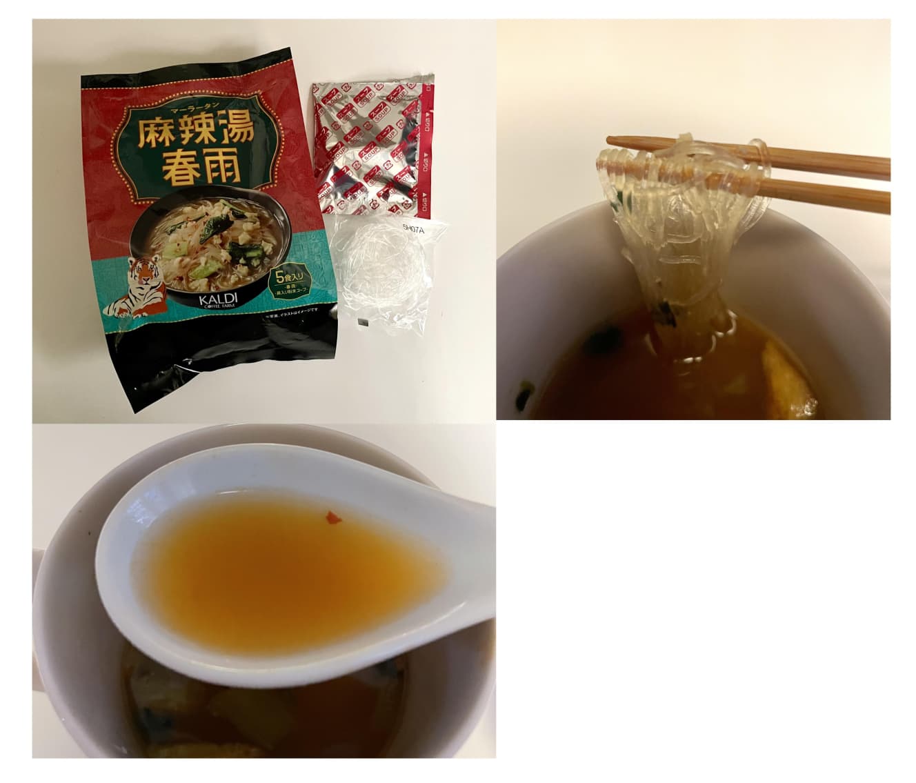 The soup is thick and has a strong, lingering flavor, giving the same impression as cup noodles. The vermicelli is boiled in a pot, which makes the finished product chewier, and the spices are firmly entwined in the vermicelli, giving it a more complex flavor. Additional toppings such as vegetables and meat would be a good idea.