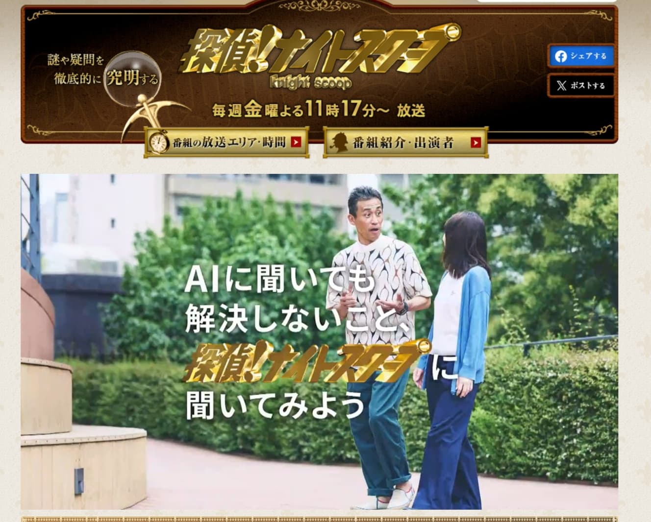 Detective is one of the most popular programs in the Kansai region! Night Scoop, one of Kansai’s most popular programs. Night Scoop is one of the most popular programs in the Kansai region, and even though it is a variety show, excessive direction may have gone beyond what was acceptable.