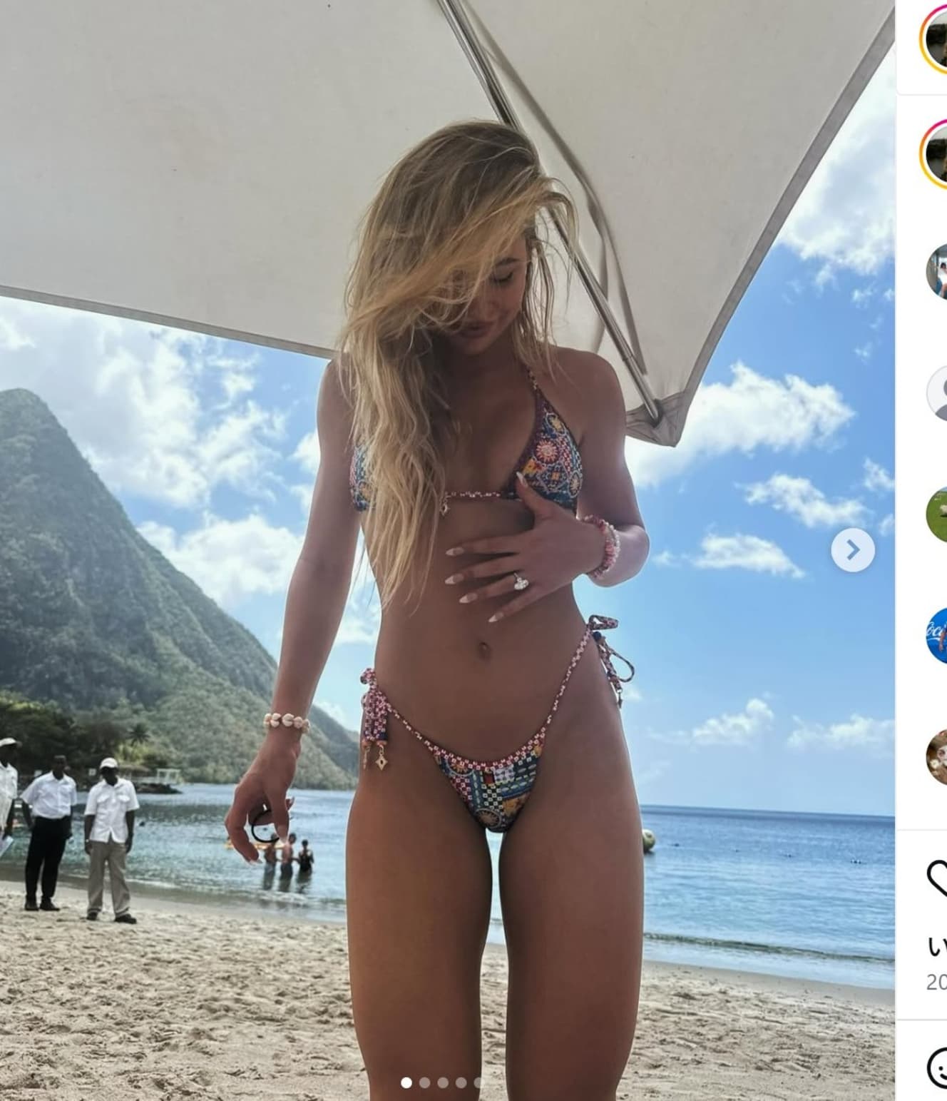 Laerdal is also glamorous in her private life, and in the spring of ’25, her engagement to Jake Paul, a world-famous YouTube star and professional boxer, made headlines. Jake is famous for his Tyson fights. Laerdal showed up at the venue together wearing a sexy dress, and after the fight, they stepped into the ring in their dresses and showed the world their surprisingly beautiful legs. On the other hand, she also has a mischievous side, showing scenes of her eating her favorite onigiri rice balls on TikTok. She even added the comment, “Tuna mayo is my all-time favorite” (laughs).