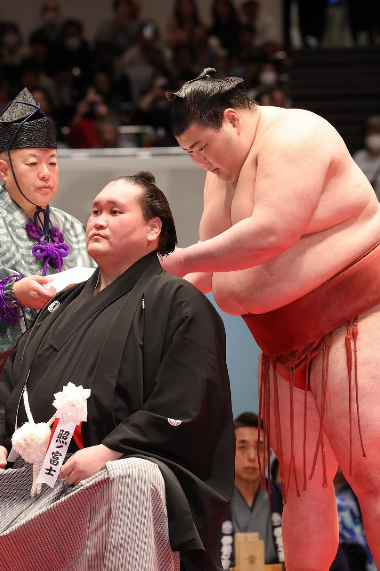 Guests who had a connection with Terunofuji stepped into the ring in alphabetical order and had their hair cut in the style of a haircut ceremony. However, Hakuho’s name was called by the host, but he did not appear in the ring at all. What on earth had happened?