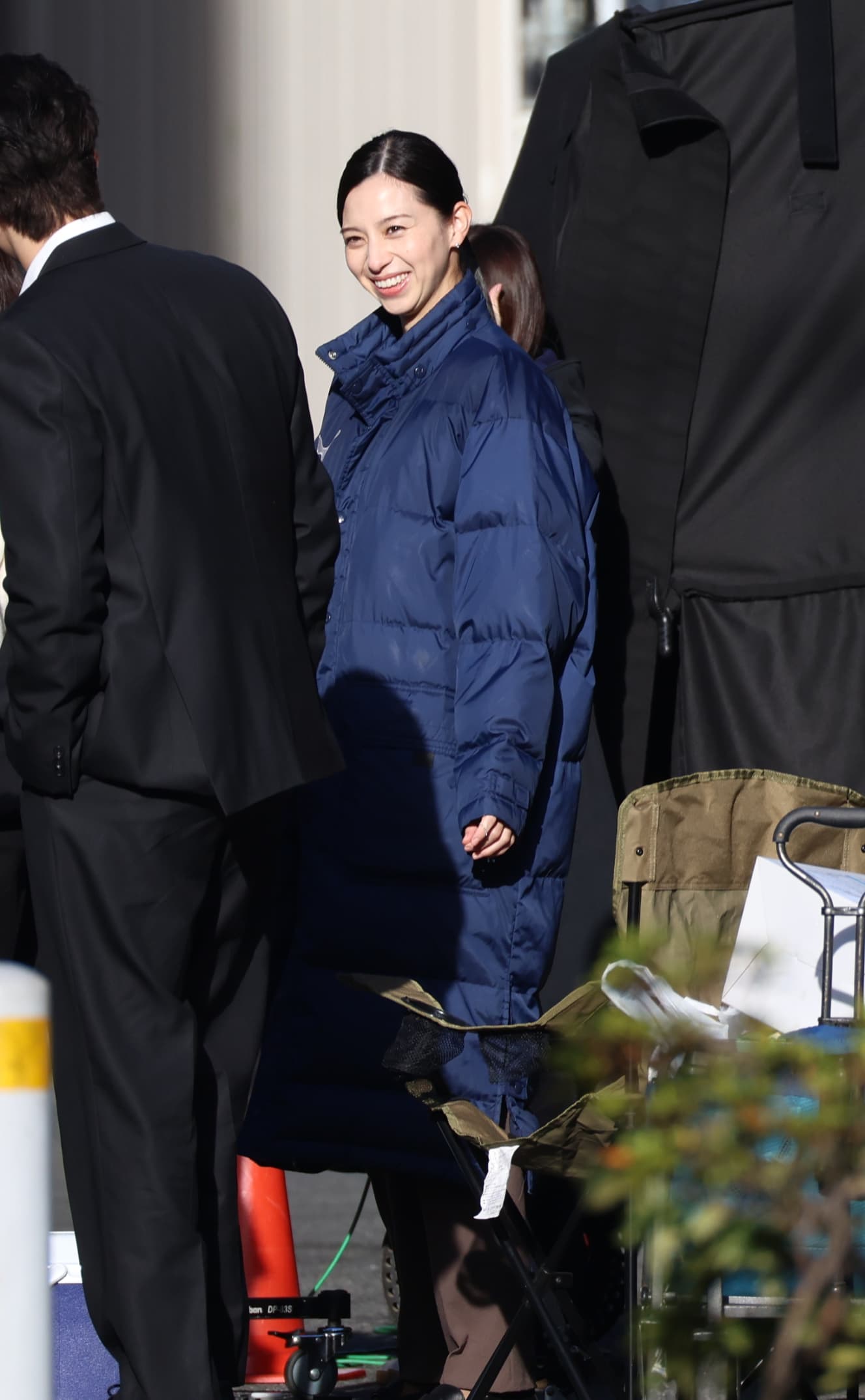 Walking in front of the film crew, who were lined up side by side in a bench coat, was a woman standing taller than the others, with a surprisingly small face and outstandingly beautiful figure: actor Ayami Nakajo (29).