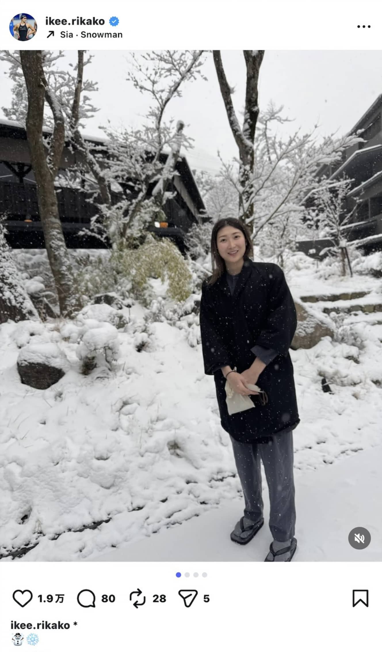 From the post, it seems that she stayed at a 4-star ryokan (Japanese inn) famous for its private rooms with open-air baths. The music that accompanied the post was the love ballad “Snowman” by the famous Australian singer Sia. The lyrics in the chorus, “No matter what the season, you are the place I return to,” may have represented Ikee’s feelings for Hagino.