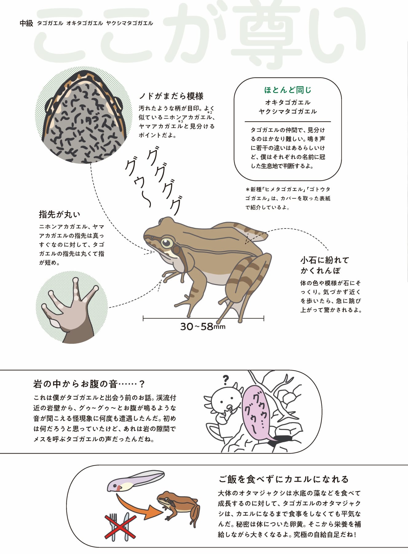 Takahiro Sakono’s love of frogs has led him to observe almost all species of frogs distributed in Japan in the field. While studying the reproduction of deer, monkeys, and other mammals at the University of Tokyo’s Faculty of Agriculture, he joined the University of Tokyo’s Biology Research Group and began his journey in search of frogs. His hobby led him to publish “48 Frogs of Japan: An Eclectic Illustrated Guide” (Kawade Shobo Shinsha), which contains his own exquisite illustrations and commentary. A new edition of the book was published in January.