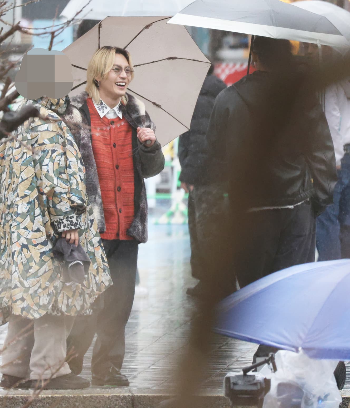 Since the two top idols of a very popular group were filming, the staff kept a close eye on their surroundings, but few people noticed them.