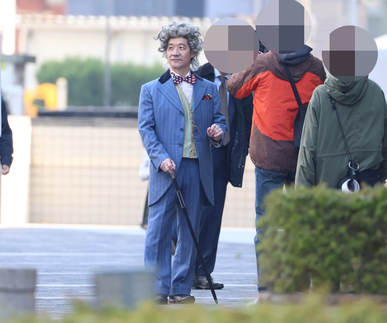 Let’s go back to the beginning. When the staff with handheld cameras and reflectors were ready and called for the start, Uchimura, walking with a walking stick in one hand, started to run as if he was dancing with a light step. He finger-butted a young couple of extras walking nearby, spun around in front of a businessman, and acted suspiciously from the outside, but his movements were so sharp that it was hard to believe he was over 60 years old.