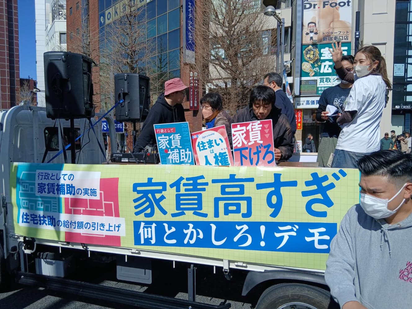 On March 14, at the east exit of Shinjuku Station, he said, “Rent is too high. Do something about it! demonstration” was held at the east exit of Shinjuku Station on March 14. The demonstration was organized by the Housing Poverty Network and the Metropolitan Youth Union.