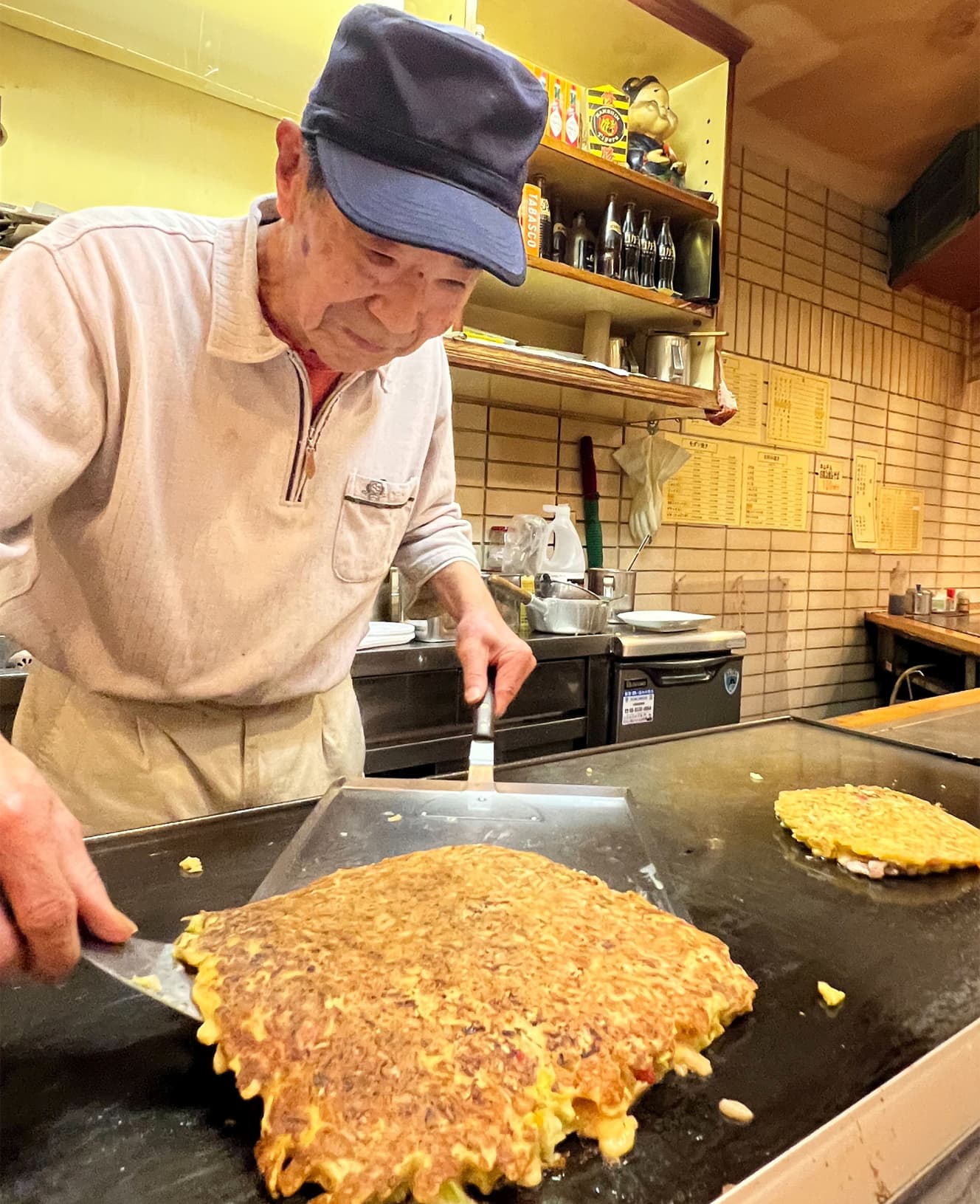 The okonomiyaki restaurant “Kameya” in Higashiosaka City was opened in 1969 by the owner, Mr. Kogiku Takeuchi (85). After 57 years in business, the owner, Kogiku Takeuchi, 85, decided to close the restaurant at the end of February this year.