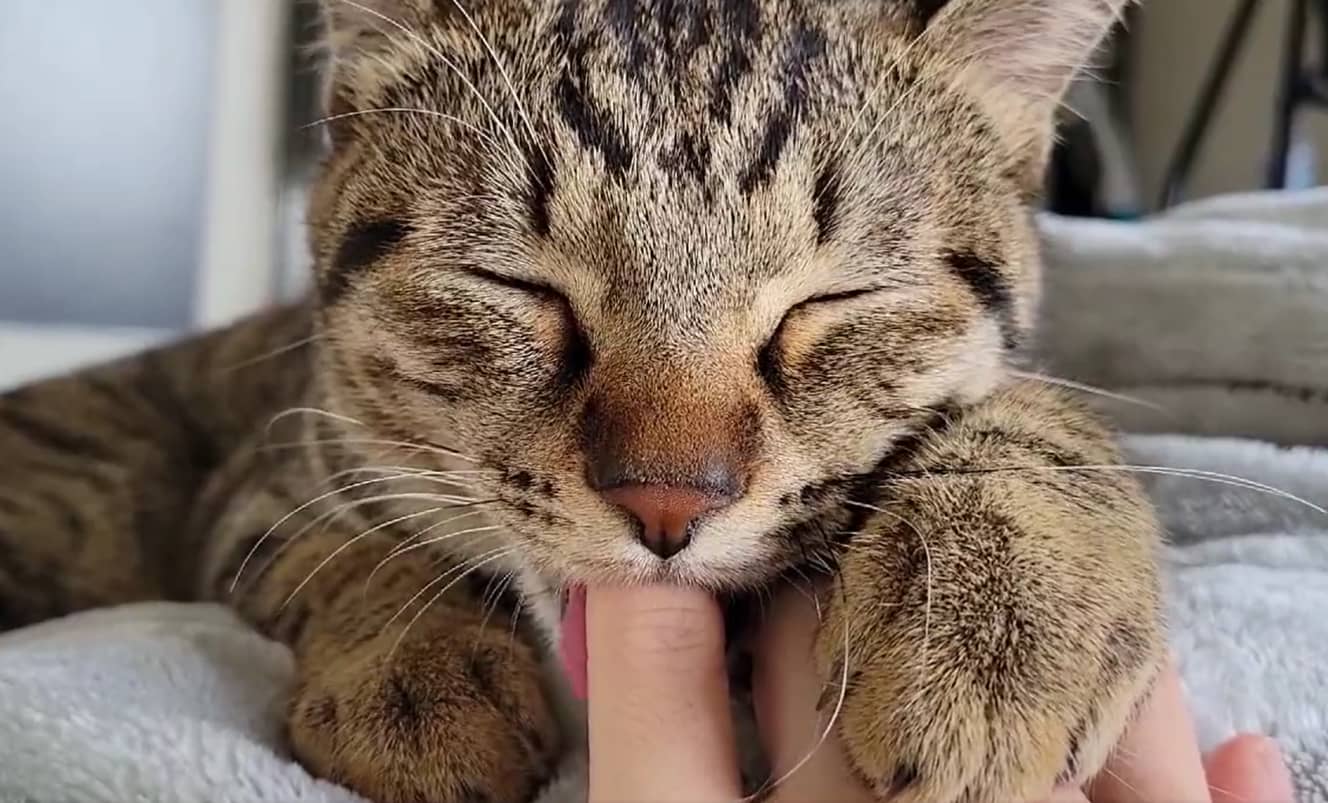 A kitten is entranced while chomping on its master’s finger… Such a happy scene soothes the hearts of Twitter people.